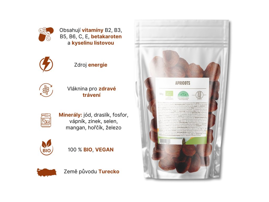 Albicocche secche BrainMax Pure® BIOLOGICHE, 500 g - Scadenza: *Scadenza del certificato CZ-BIO-001: 30.06.2026