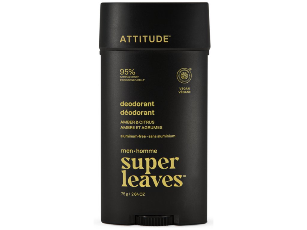 ATTITUDE Deodorante naturale per uomo Super Leaves, Amber & Citrus, 75 g