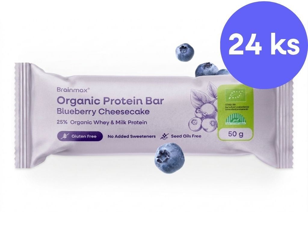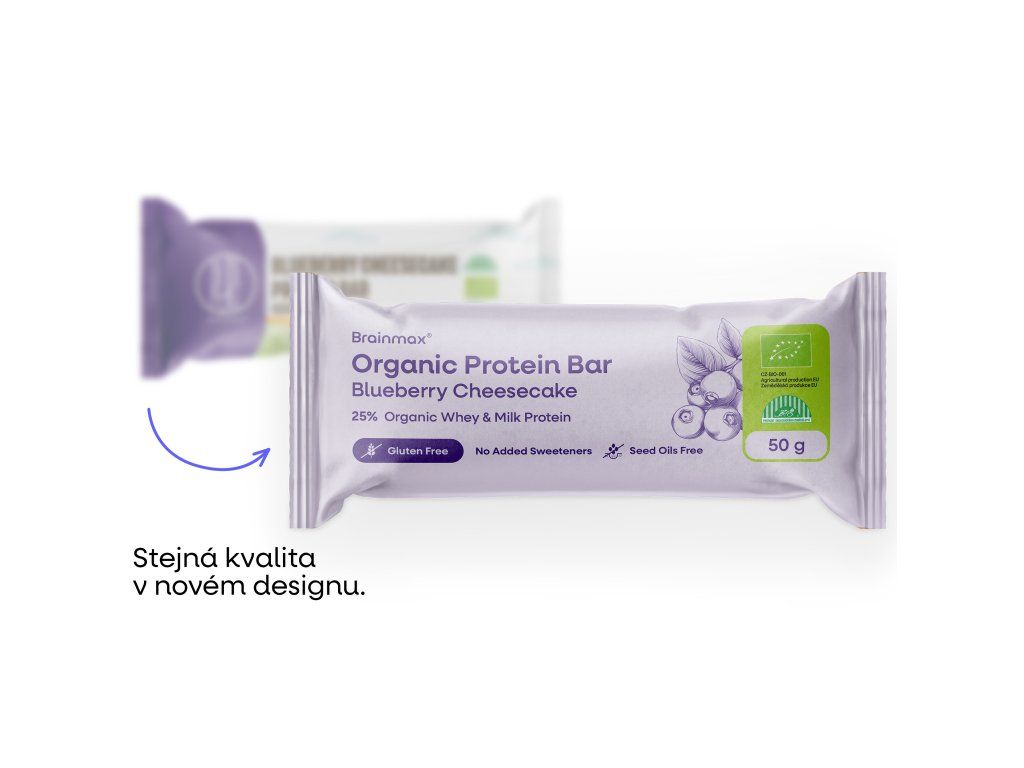 Barretta proteica BrainMax al gusto di cheesecake ai mirtilli, BIO, 24 x 50 g Barretta proteica al gusto di cheesecake ai mirtilli / *Certificato CZ-BIO-001