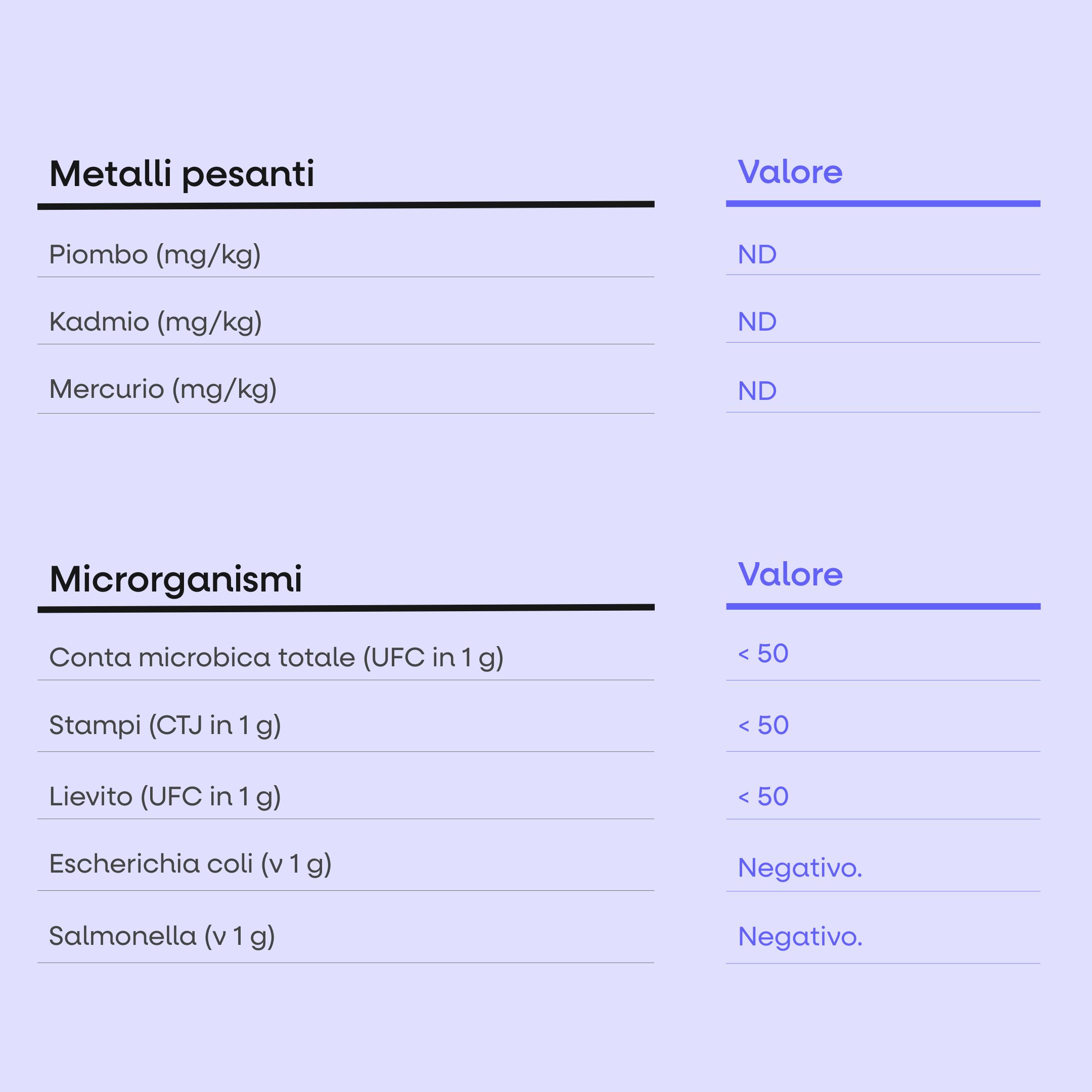 Conservazione: Conservare in luogo asciutto e fresco, al riparo dalla luce solare diretta.