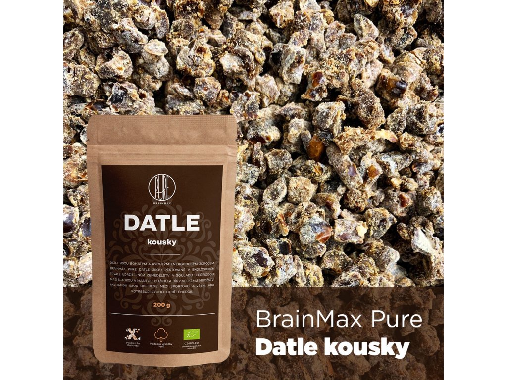 BrainMax Datteri puri essiccati a pezzi BIO, 200 g - SCAD. *Certificato CZ-BIO-001, Scadenza: 31.12.2025