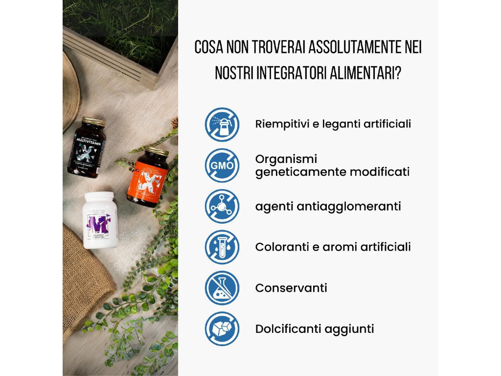 Avvertenze: Tenere fuori dalla portata dei bambini! Il prodotto non è destinato ai bambini, alle donne in gravidanza e alle donne che allattano. Non superare la dose giornaliera consigliata. Il preparato non è inteso come sostituto di una dieta varia. Seguire uno stile di vita sano.