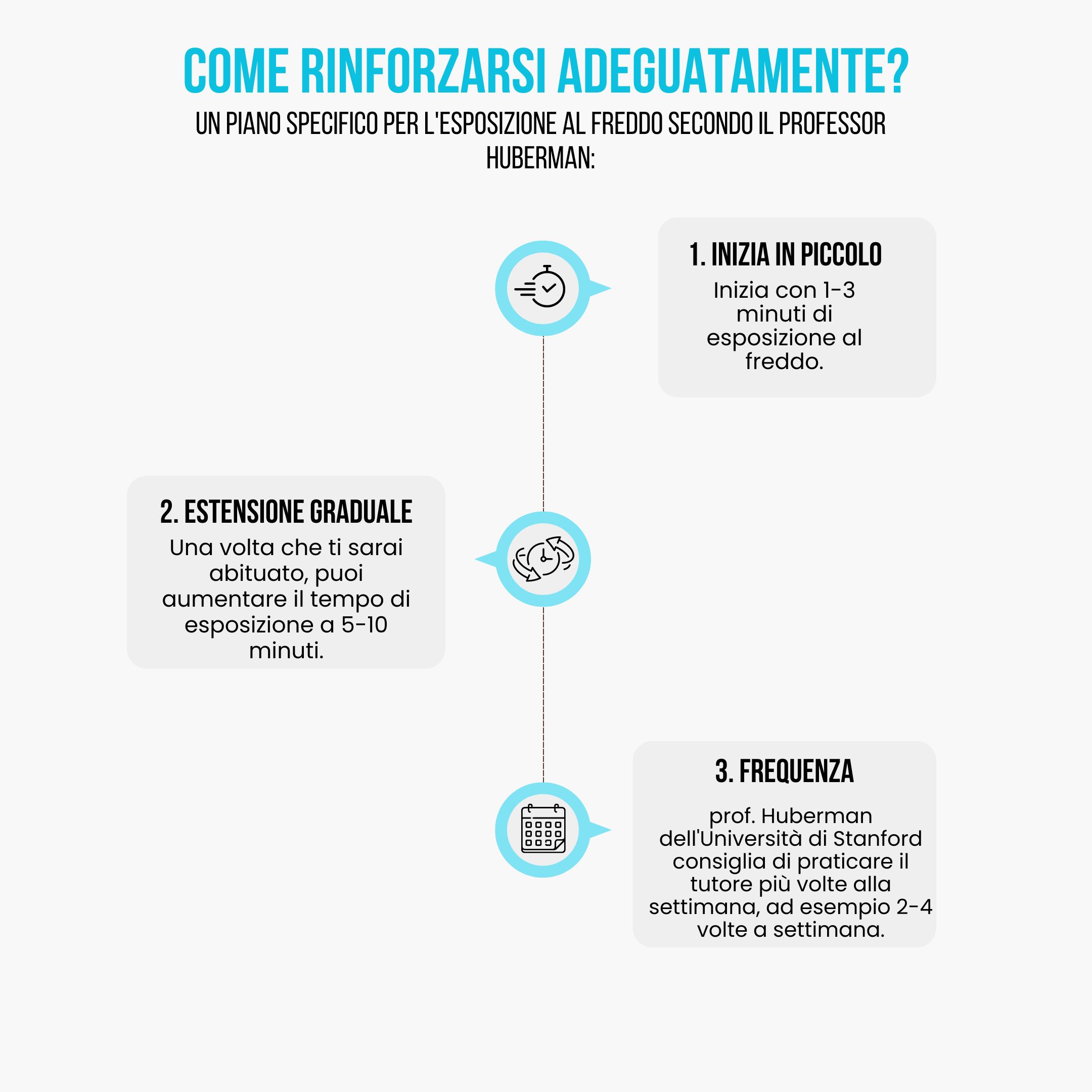 - 1. Durata: inizia con 1-3 minuti di esposizione al freddo.
