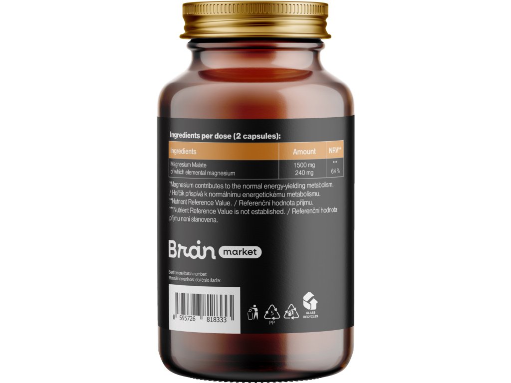 BrainMax Magnesium Malate, 90 capsule vegetali Forma organica di magnesio con elevata biodisponibilità fino all’80%, 45 dosi, integratore alimentare