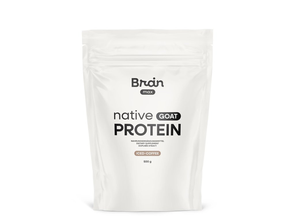 BrainMax Native Goat Protein, Iced coffee, 500 g Proteine del latte di capra microfiltrate non denaturate, 14 porzioni, integratore alimentare