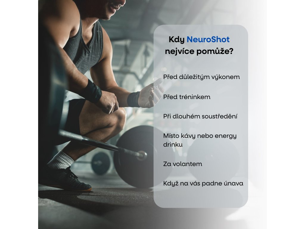 NeuroShot agisce sui neurotrasmettitori chiave , ovvero dopamina, acetilcolina e noradrenalina, che influenzano l'umore e la motivazione . Contiene CDP-colina e uridina, che supportano la produzione di acetilcolina, mentre l'acetil-L-tirosina funge da precursore della dopamina e della noradrenalina. La caffeina stimola il cervello bloccando l'adenosina e aumenta l'attività dei percorsi di vigilanza. Grazie alla L-teanina si verificano anche ondate di calma: la teanina supporta le onde cerebrali alfa che riducono al minimo la tensione e il crollo improvviso dovuto alla caffeina. Il risultato è una stimolazione intelligente e stabile che ti aiuta a rimanere concentrato, produttivo e calmo anche sotto pressione.