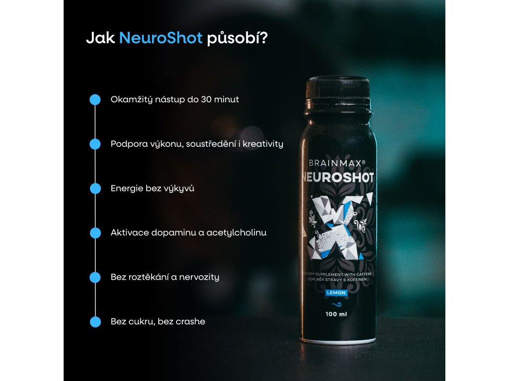 BrainMax NeuroShot, 100 ml, 12 pezzi Integratore alimentare nootropico per concentrazione, energia e prestazioni senza crolli.