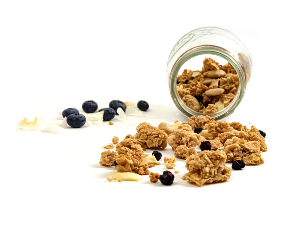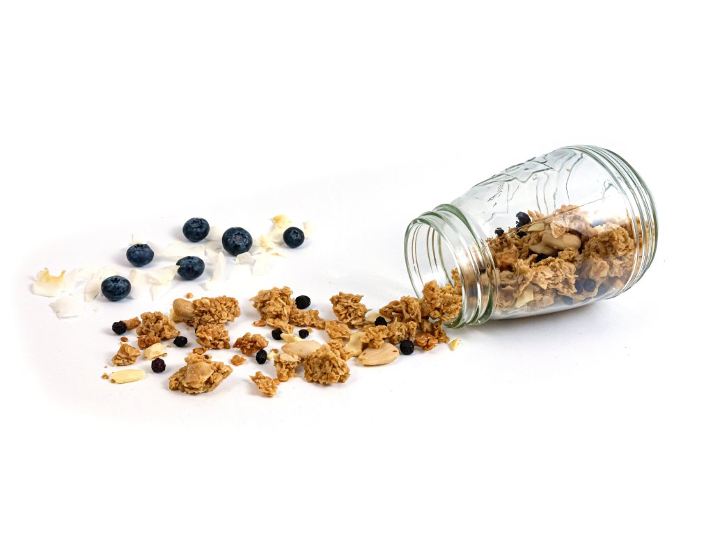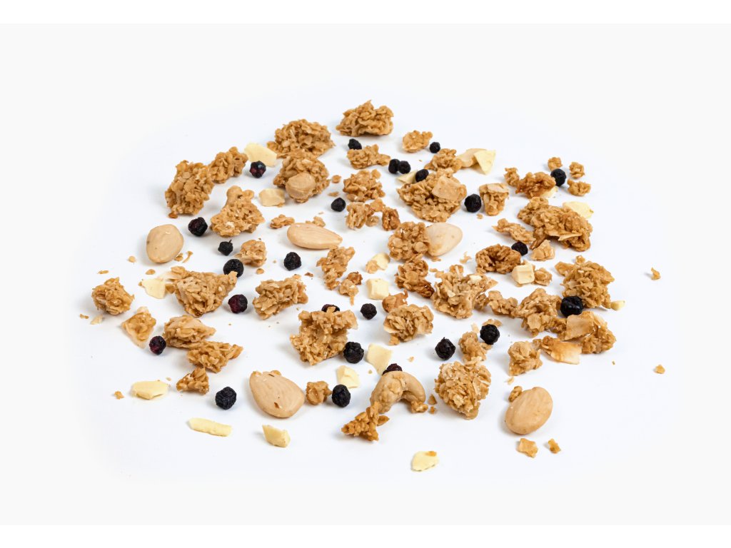 La base di pezzi nuovi davvero grandi e sciolti sulla linguaLe granole Cheesecake ai mirtilli sono farina d'avena BIOLOGICA senza glutine. Una discreta quantità di mandorle, anacardi e scaglie di cocco contribuiscono alla consistenza più croccante. L'esplosione di sapori è sottolineata dai mirtilli freschi e aspri BIO liofilizzati e dal gusto esotico del cocco.