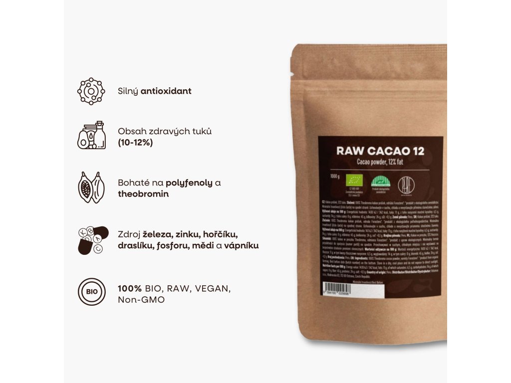 BrainMax Puro Cacao Crudo 12, BIO, 1kg *Certificato CZ-BIO-001