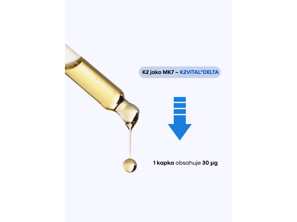 Ingredienti per porzione (4 gocce): Olio vettore: olio MCT, vitamina K2 (MK-7, K2 VITAL®DELTA) (120 µg, RHP* 160%), vitamina D3 (da fitosteroli di pino) (100 µg / 4000 UI, RHP* 2000%). Senza sostanze di zavorra.