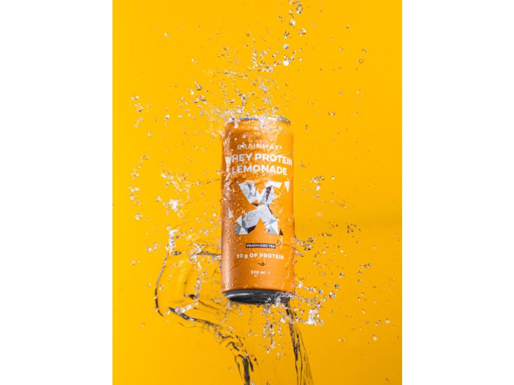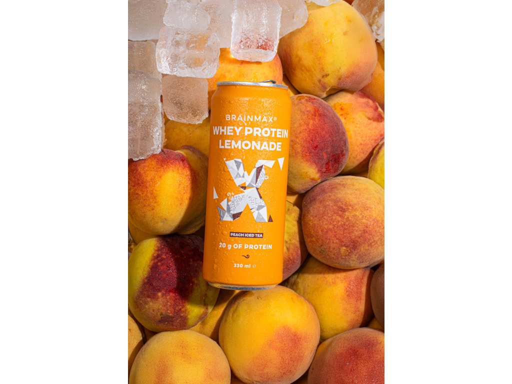 BrainMax Whey Protein Lemonade, Tè freddo alla pesca, limonata proteica, pesca, 330 ml Proteine del siero di latte native con colostro bovino e collagene di manzo allevato ad erba, integratore alimentare