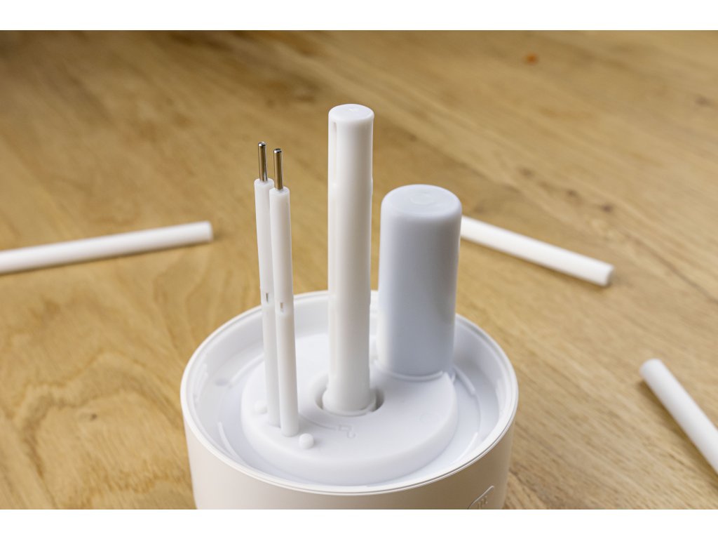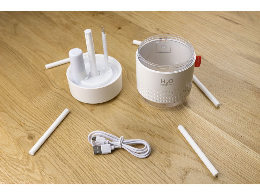 Il diffusore di aromi H2O funziona come umidificatore d'aria senza l'aggiunta di oli essenziali . Basta riempire il contenitore con acqua fredda, preferibilmente distillata, e premere il pulsante. Il diffusore inizierà immediatamente a creare vapore acqueo freddo. Dopo aver svuotato il serbatoio, il diffusore si spegne automaticamente, quindi non c'è rischio di incendio come quando si utilizzano le classiche lampade aromatiche.