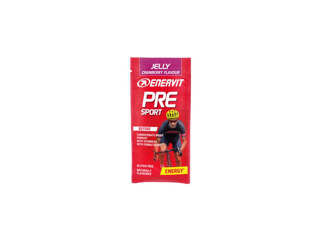 Cosa mangiare prima dell'allenamento o della gara? Enervit PRE Sport è la risposta: una gelatina di carboidrati che sazia ma non appesantisce la digestione. Grazie al fruttosio e all'isomaltulosio, fornisce energia a rilascio graduale e aiuta a utilizzare i grassi come carburante. Non contiene grassi né proteine, quindi viene digerito rapidamente. Ideale da consumare 1-2 ore prima dell'attività fisica, sia in allenamento che in gara. Con un fresco gusto di mirtillo rosso.
