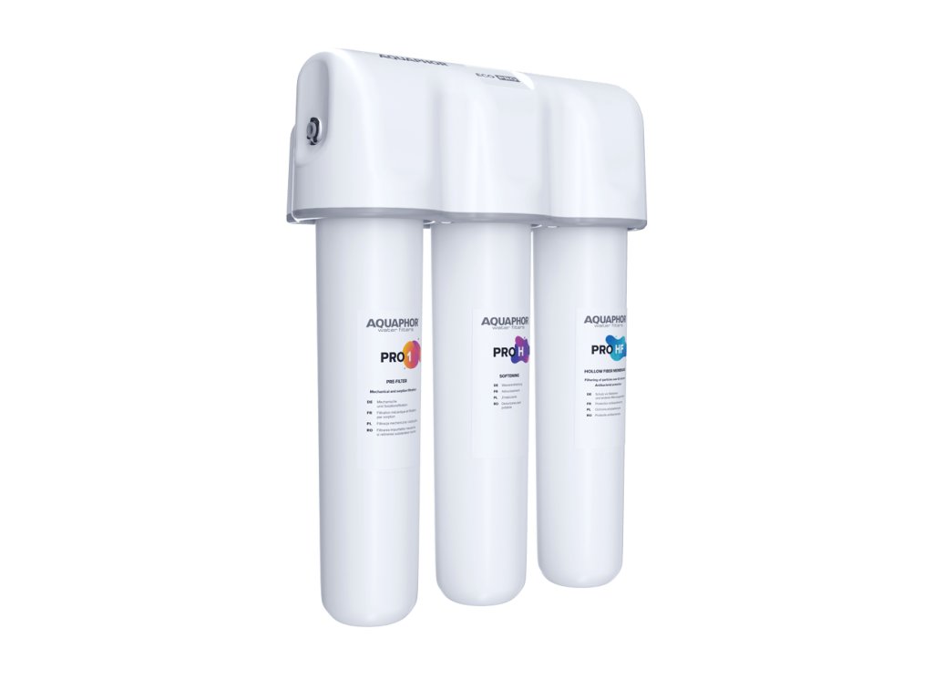Il sistema di addolcimento ECO H Pro comprende un innovativo modulo di pretrattamento e assorbimento 2 in 1, un inserto a scambio ionico per ridurre le incrostazioni e una membrana di ultrafiltrazione in fibre cave per un'assoluta protezione antibatterica.