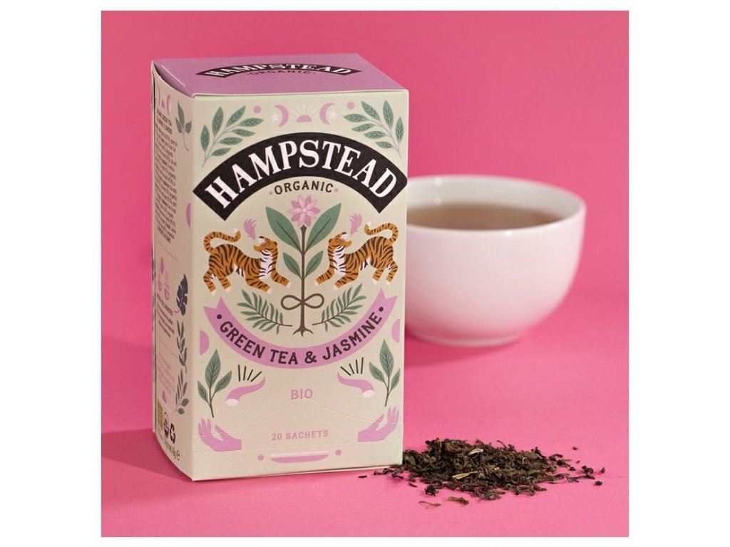 Hampstead Tea London - Tè verde biologico con gelsomino e bergamotto, 20 pezzi *Certificato CZ-BIO-001