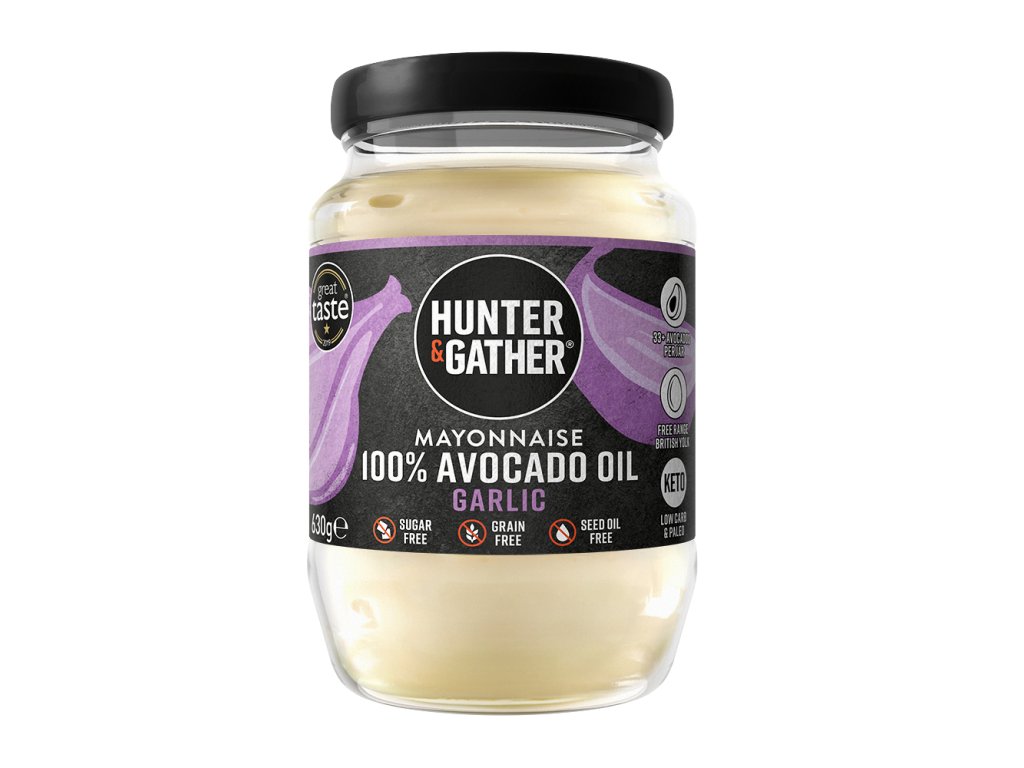 Hunter & Gather ha arricchito la sua classica maionese all'avocado con aglio profumato. Il suo gusto si perfeziona con una goccia di succo di limone e un pizzico di pepe nero macinato.