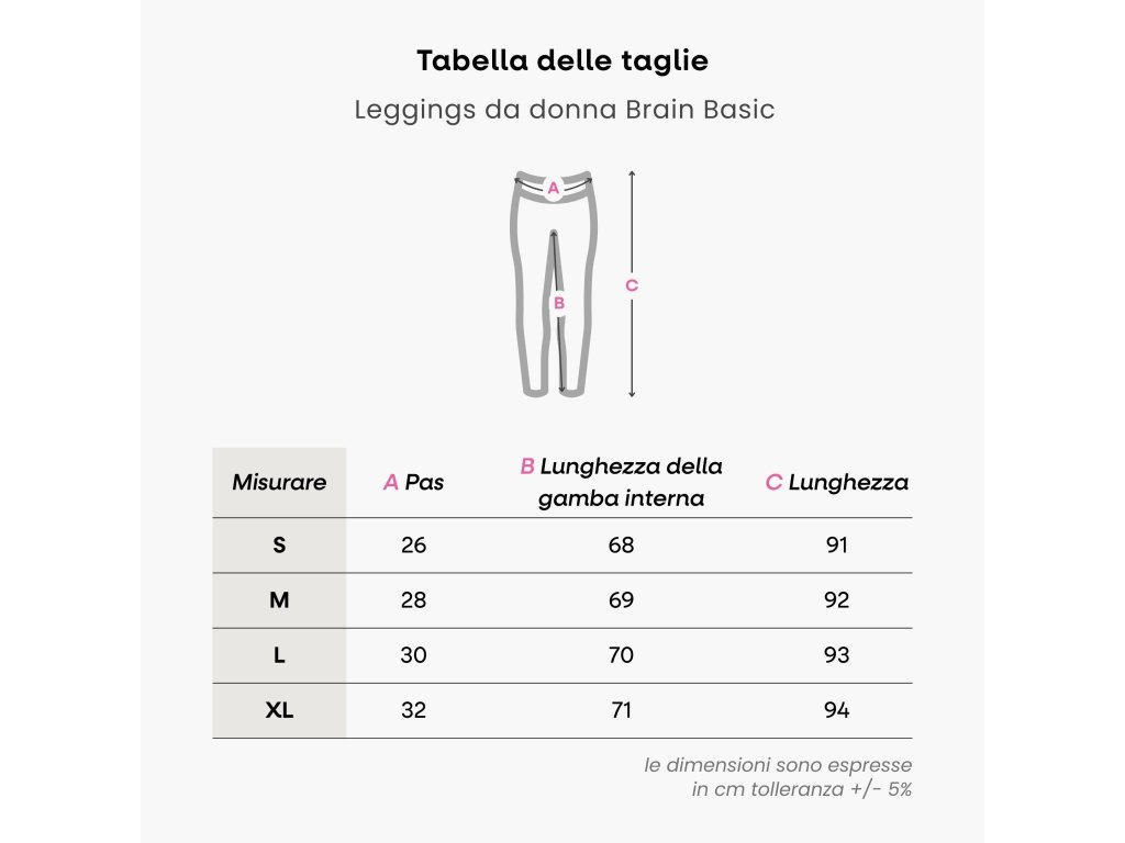 I leggings Basic da donna in colore marrone sono realizzati con una miscela di nylon (68%) ed elastan (32%) di alta qualità, garantendo elasticità e adattamento ottimale alla figura. Il tessuto elastico offre un elevato comfort durante il movimento, ideale per attività sportive e fitness. Sul retro dei leggings è presente la scritta Brain, che conferisce ai leggings un aspetto moderno e originale.