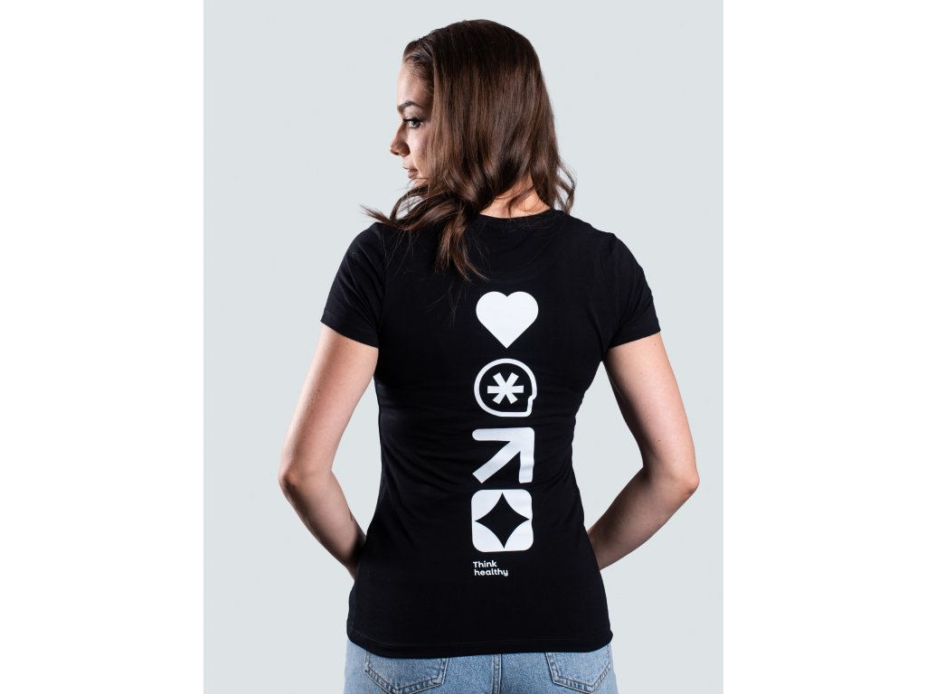 Maglietta da donna Brain Think Healthy, nera Maglietta a maniche corte per donna