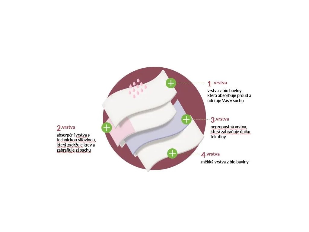 Il taglio delle mutandine con vita rialzata garantisce un elevato comfort se indossato durante le mestruazioni. Puoi scegliere tra le taglie dalla XS alla XL. La composizione delle mutandine mestruali include uno strato assorbente in rete tecnica che trattiene sangue e odori .