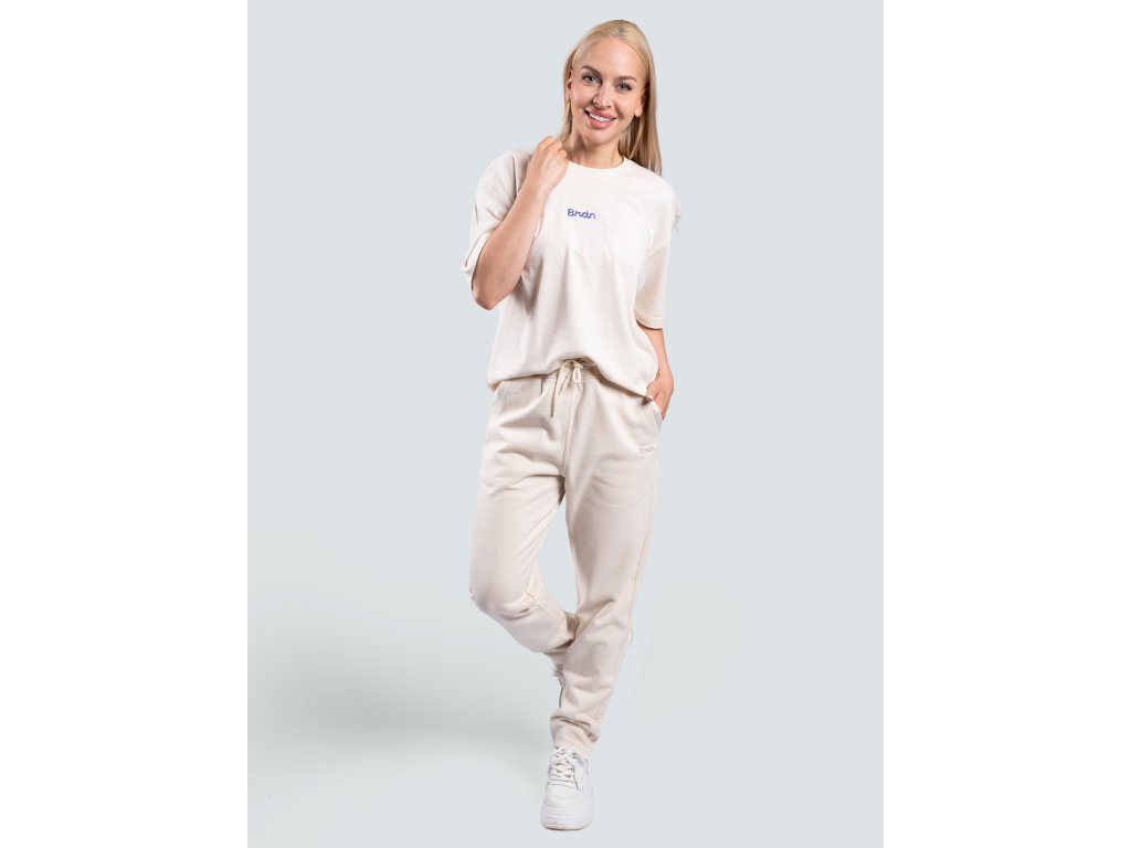 Brain pantaloni tuta unisex in cotone BIO, color crema Pantaloni tuta unisex color crema in cotone BIO
