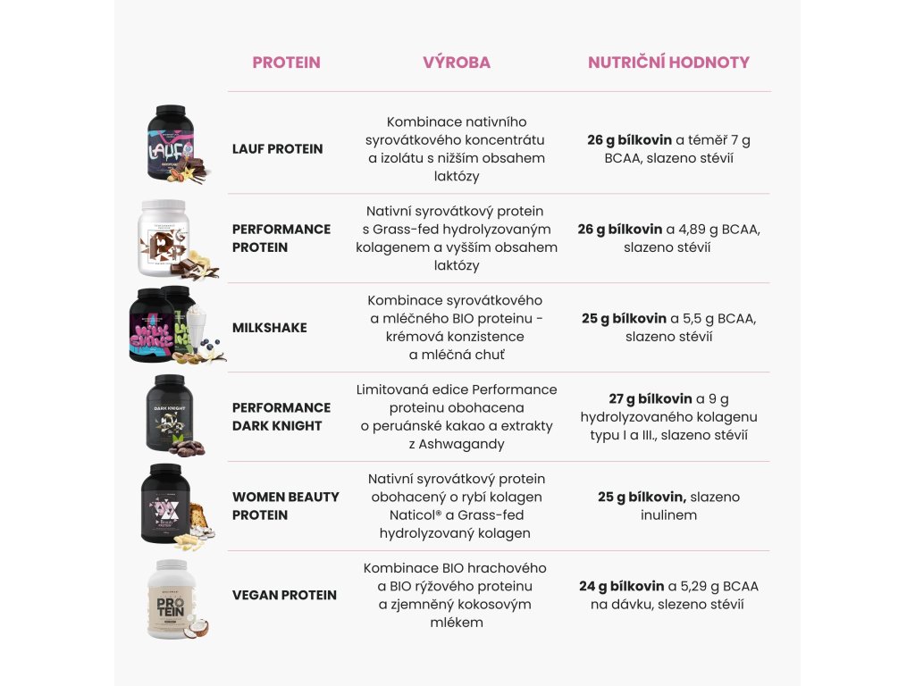 Sia LAUF che Performance Protein contengono proteine native della massima qualità. La differenza è che LAUF contiene il 100% di proteine native sotto forma di isolato e concentrato in un rapporto 1:1. Mentre Performance contiene il 62% di proteine del siero del latte native e il 26% di collagene proveniente da animali alimentati ad erba. È inoltre arricchito con colostro vaccino e latte di cocco. La proteina LAUF contiene uno spettro più ricco di aminoacidi, in particolare leucina pro-anabolica, poiché contiene proteine del siero del latte native al 100%. La proteina LAUF è maggiormente incentrata sull'integrazione proteica non solo per le prestazioni sportive e la crescita muscolare, mentre Performance ha usi più ampi per l'immunità, l'intestino, ma anche per l'allenamento.