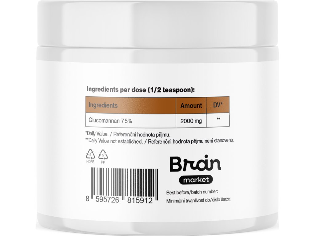 Polvere di glucomannano BrainMax, 200 g Glucomannano da radice di Konjac, 100 porzioni, integratore alimentare
