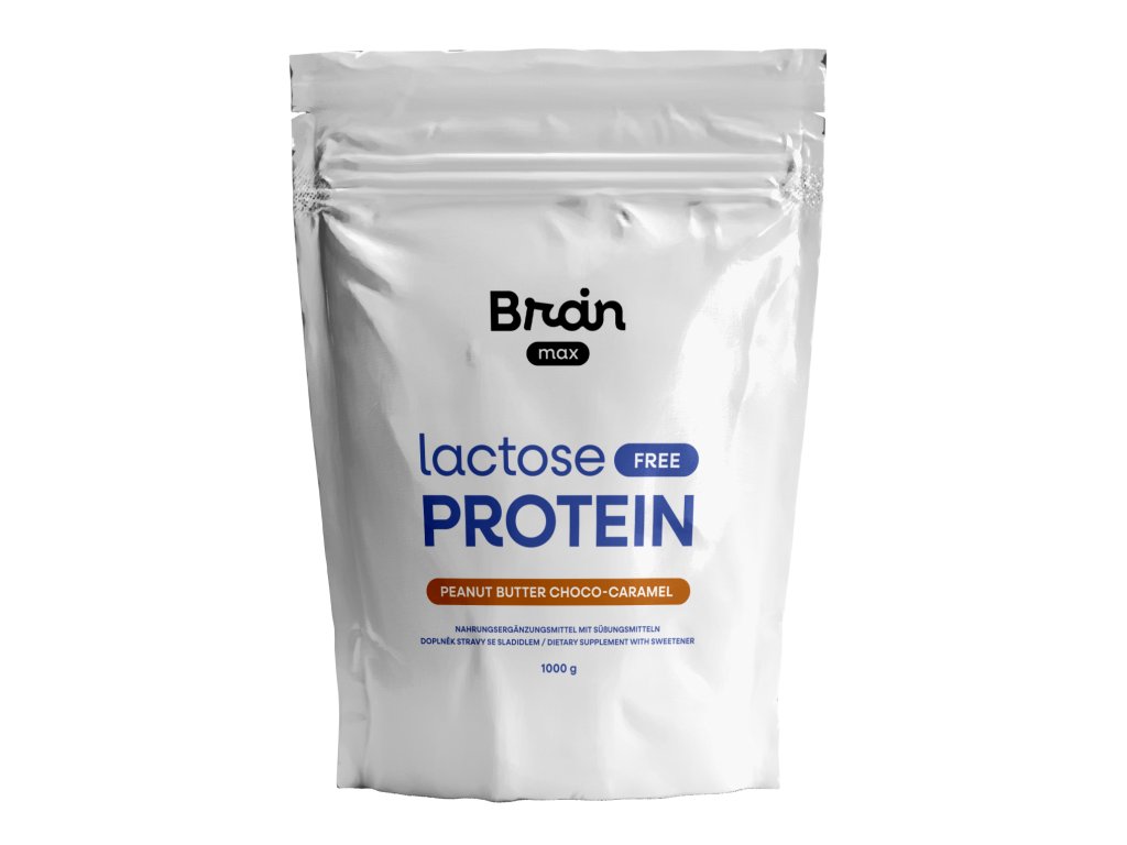 Proteine senza lattosio BrainMax, burro d'arachidi, cioccolato e caramello, 1000 g Proteine microfiltrate non denaturate da latte vaccino nutrito con erba, 28 porzioni, integratore alimentare
