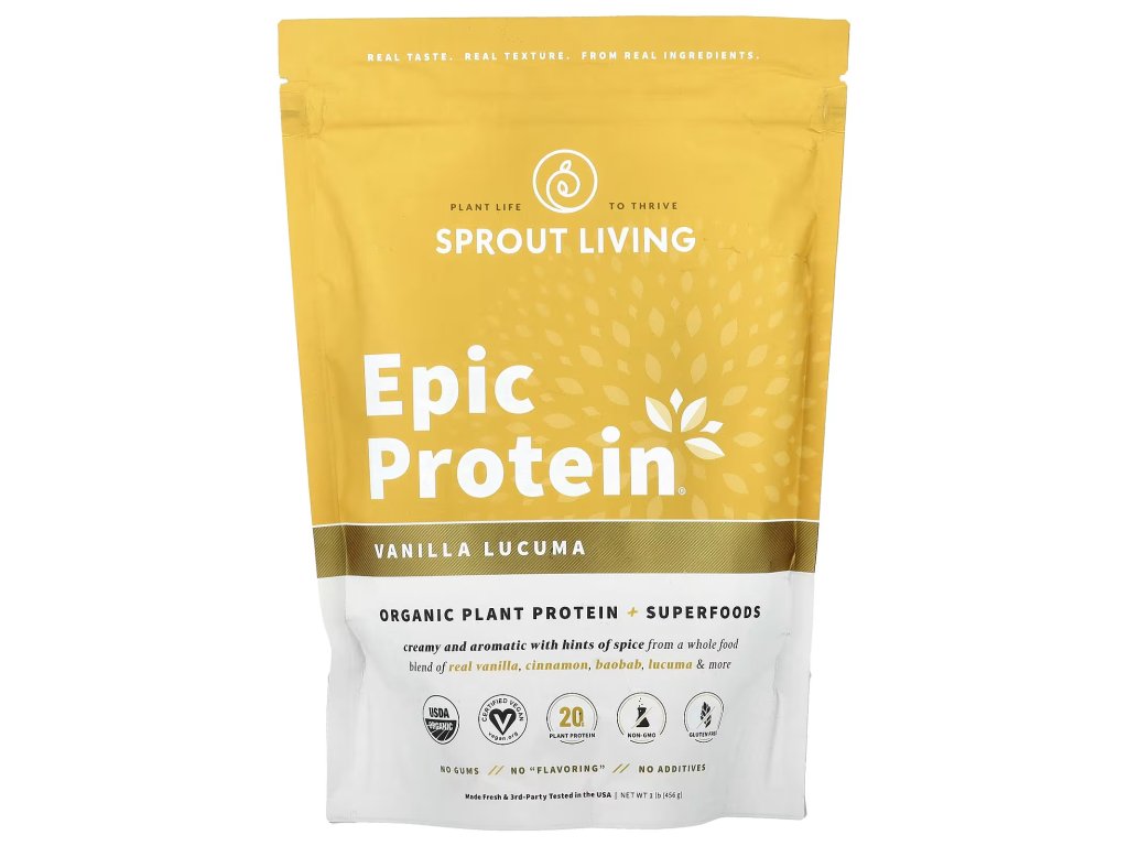 Proteine Sprout Living Epic, vaniglia e lucuma, 456 g Miscela proteica complessa