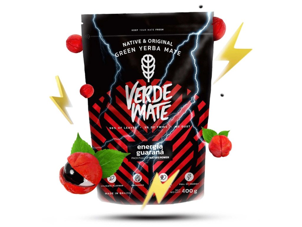 Verde Mate Green Energía Guaraná è una yerba mate brasiliana tonificante . Contiene guaranà , bacche di goji , petali di calendula e aroma naturale . Se stai cercando una buona fonte di energia, questa è quella giusta! L'effetto stimolante combinato di yerba e guaranà è evidente.